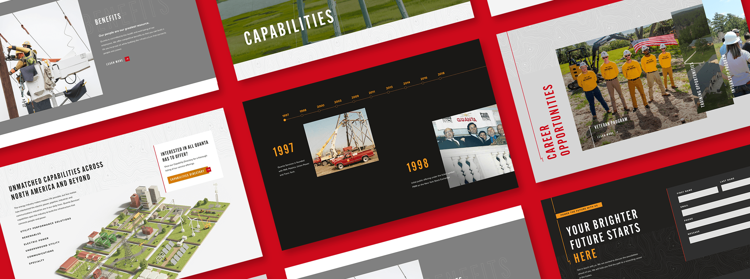Quanta’s unique operating structure means it is comprised of many independently operating companies. Alongside Quanta Corporate, we have delivered branding, website design, and software development services through a streamlined process to elevate the brands of many of Quanta’s over 200 operating companies.