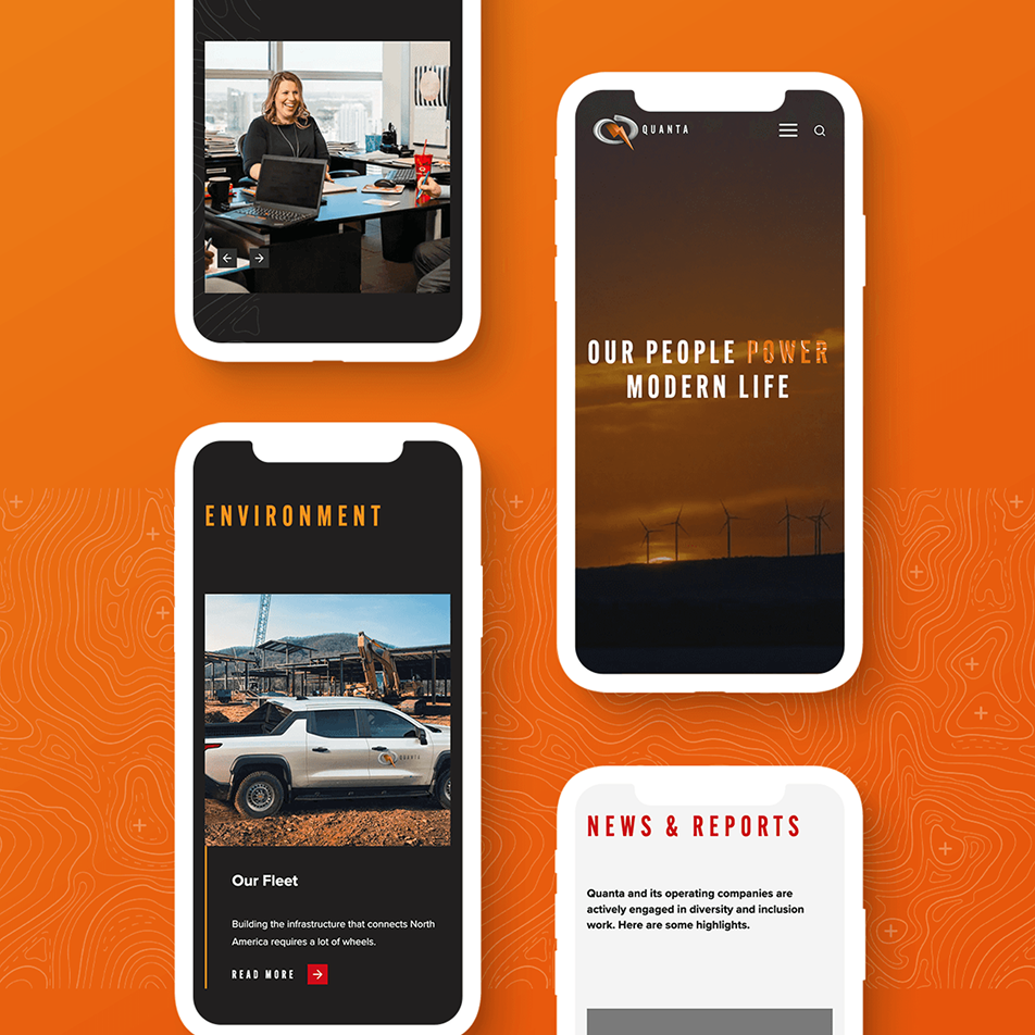 Building on the relationships we had established, we got to work on an extensive website discovery and design. We went to the source, meeting Quanta’s leaders and workers to learn the ins and outs of what needed to be communicated. We explored audience personas and defined a visual and verbal identity. Our engineers joined in, crafting a responsive and secure web framework and ultimately building and launching a new corporate website.